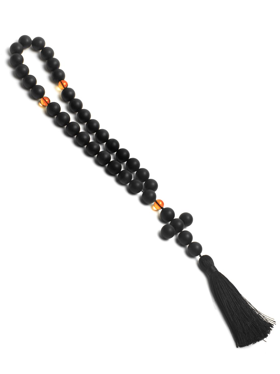 The elegant Orthodox amber rosary "Union" embodies the unity of opposites in a restrained color scheme. These black cognac amber rosaries are made of matte black beads with a diameter of 10 mm, creating a strict rhythm for concentrated prayer. A prefabricated cross made of the same black beads emphasizes the integrity of the composition, and cognac-colored dividers add a noble warmth to these Orthodox rosaries.